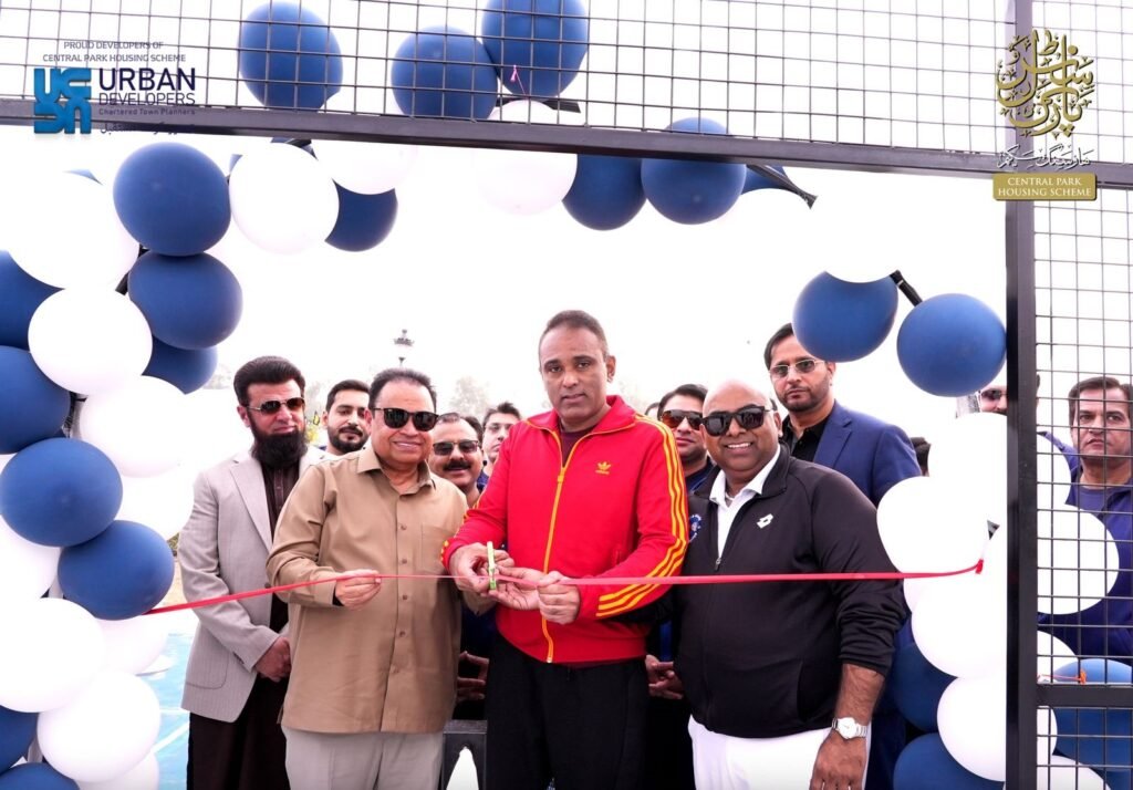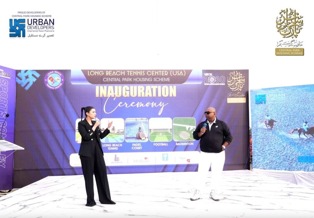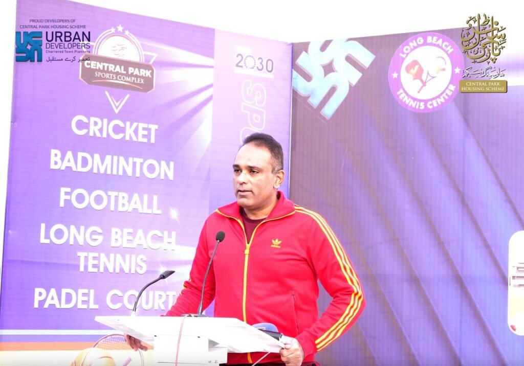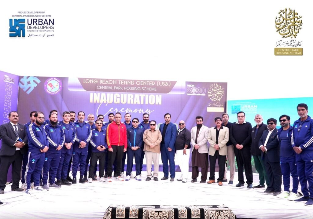 The Long Beach Tennis Center USA proudly marked a historic milestone with the inauguration of its Lahore branch at the Central Park Sports Complex, located within the Central Park Housing Scheme. The grand opening ceremony, organized by Urban Developers Group, brought together distinguished leaders, sports officials, and international guests. The event was graced by chief guest Mian Tahir Javed, Chairman of Urban Developers Group, along with Punjab Secretary Sports and Youth Affairs Mudassar Riaz Malik, guest of honor Sid Siddiqui, and special guests from the United States. Renowned international cricket umpire Aleem Dar and several American coaches were also present, reflecting the international significance of this initiative and its commitment to elevating sports standards in Pakistan.
